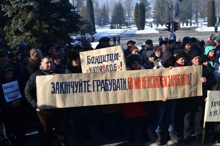 Як повідомив власкор IA ZIK, учасники акції протесту тримали плакати з написами: «Уряд – у відставку», «Геть «вовчі» тарифи», «Штраф у 320 000 грн – знищення підприємця», «ЦІ» не кращі за попередників», «Хочемо жити, а не виживати» тощо.