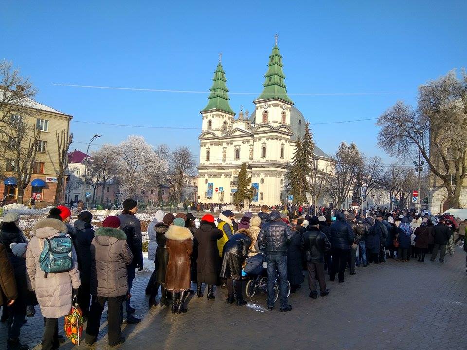 В Тернополі тисячі вірян стоять у черзі до чудотворної ікони. Фото