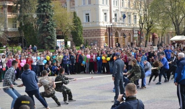 У центрі Тернополя кілька сотень школярів гартували силу духу та характеру. З ініціативи місцевого правового ліцею діти зібралися на головній площі міста, аби взяти участь у спортивних змаганнях, поспілкуватися з рятувальниками та військовими, а також започаткувати всеукраїнський патріотичний флешмоб.
