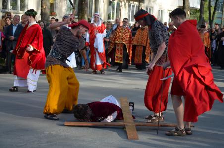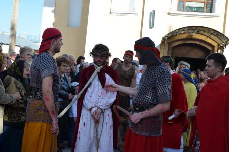 Цього року хресна хода була особливою – театралізованою. Акторами, які інсценізували муки Ісуса Христа на шляху до Голгофи, були семінаристи Тернопільської вищої духовної семінарії імені Патріарха Йосипа Сліпого.