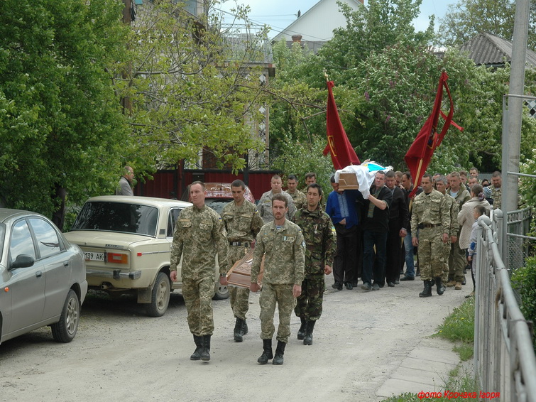 Від нашої групи у останню путь відомого волонтера приїхали провести координатор групи Василь Конько та активіст Ярослав Брилінський. На місці нас зустріли наші борщівські побратими з Володимиром Чугаєвським на чолі. Сумно було в цей день в мальовничому містечку мого дитинства Борщові, на похорон прийшло багато людей. Були тут бійці, волонтери, громадські і політичні діячі, земляки.