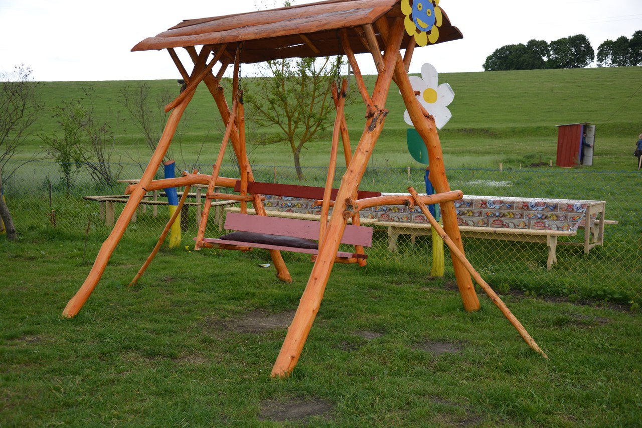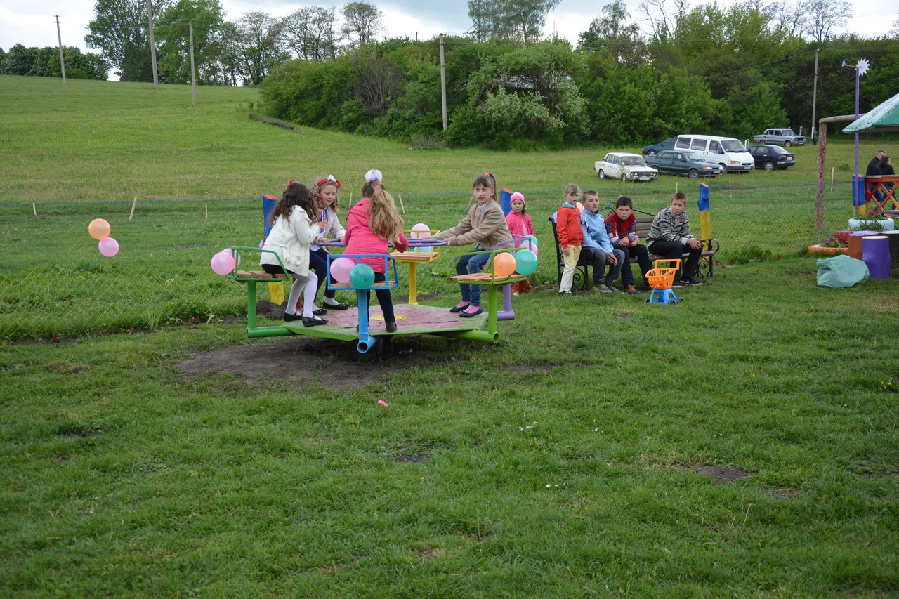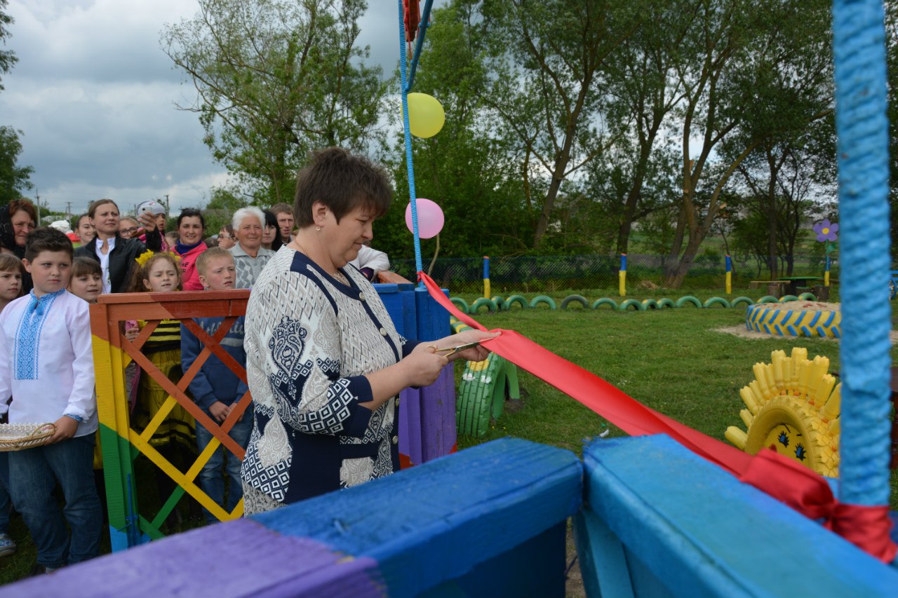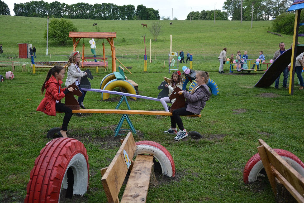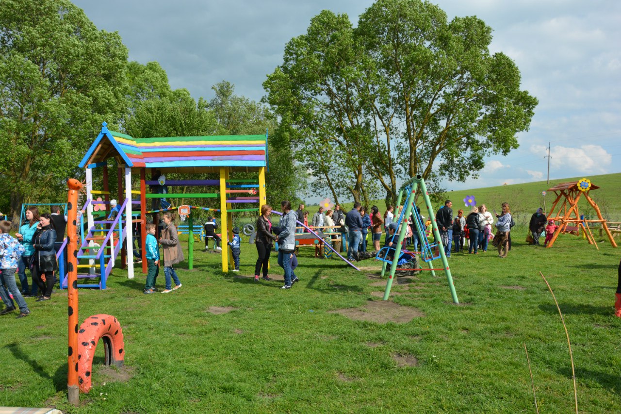 Спонсори і меценати подарували для дитячого майданчика лавочки, гойдалки, смітники. А все оформлення та спорудження дитячого майданчика взяли на себе батьки дітей та жителі села.