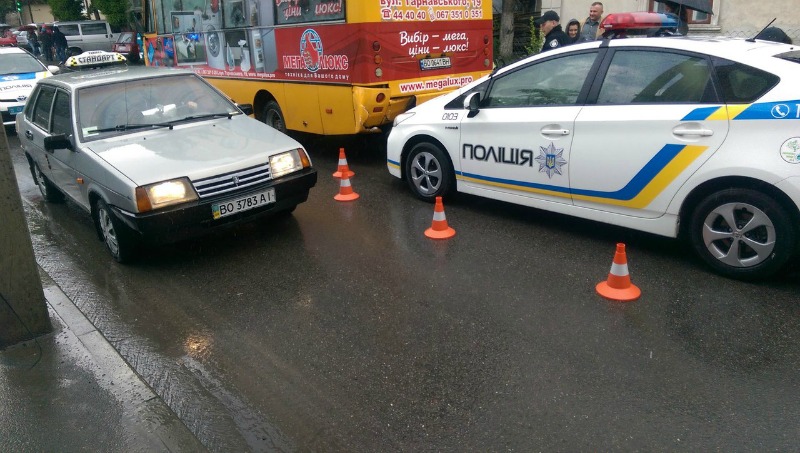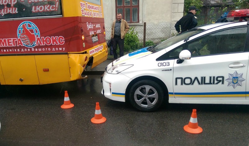 В Тернополі на вул. За Рудкою поліцейське авто врізалося у маршрутне таксі. У результаті постраждав громадський транспорт – “підм’явся” бампер.