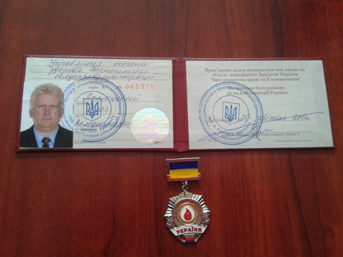 Жителю Тернопільщини присвоєно звання Почесного донора. Фото