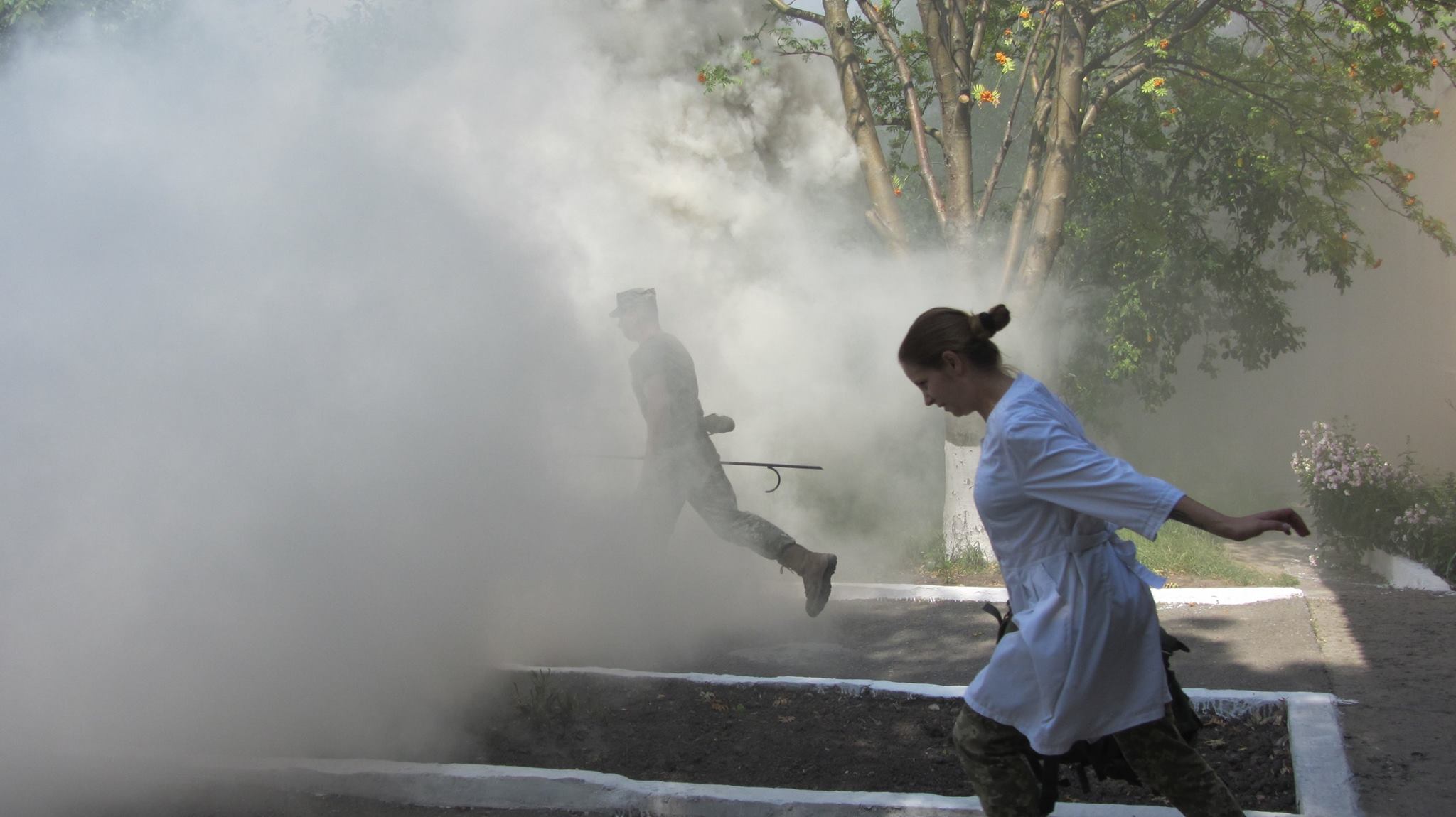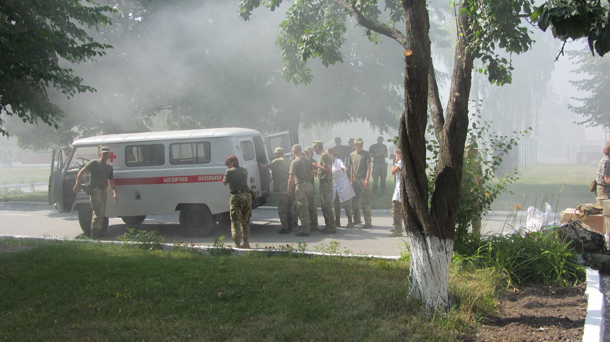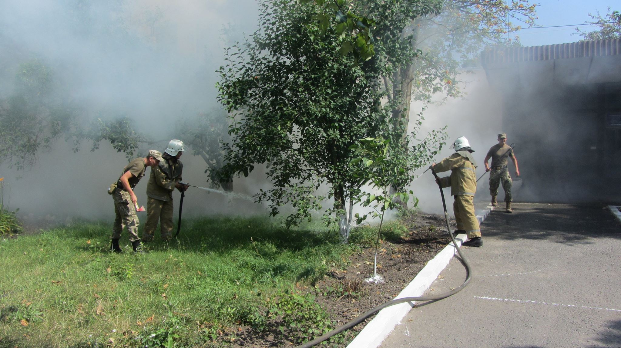 Звук сирени пожежного автомобіля,евакуація та порятунок людей привернули увагу значної кількості особового складу військової частини.