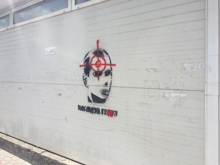 Але, нещодавно невідомі особи вирішили надати протилежного сенсу малюнку. Вони домалювали на чолі мішень та зафарбували кілька літерів.