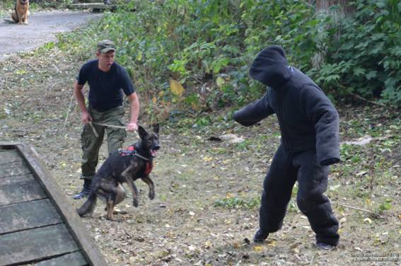Наприкінці першого етапу змагання вівчарки виконали вправу «затримання» з його подальшою охороною.