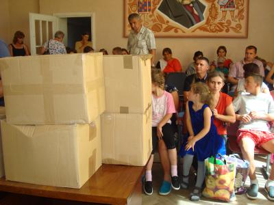 Благодійну допомогу продуктами харчування від німецького фонду отримали сім’ї переселених осіб із Криму та зони АТО, в яких виховуються діти, сім’ї, що опинилися в складних життєвих обставинах, а також родини загиблих учасників АТО.