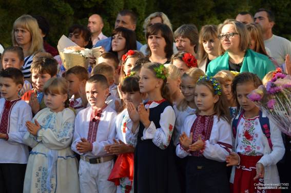 На першовересневі урочистості завітали почесні гості: радник міністра внутрішніх справ України Михайло Апостол, керівник Нацполіціїї краю Олександр Богомол та представники органів місцевого самоврядування.