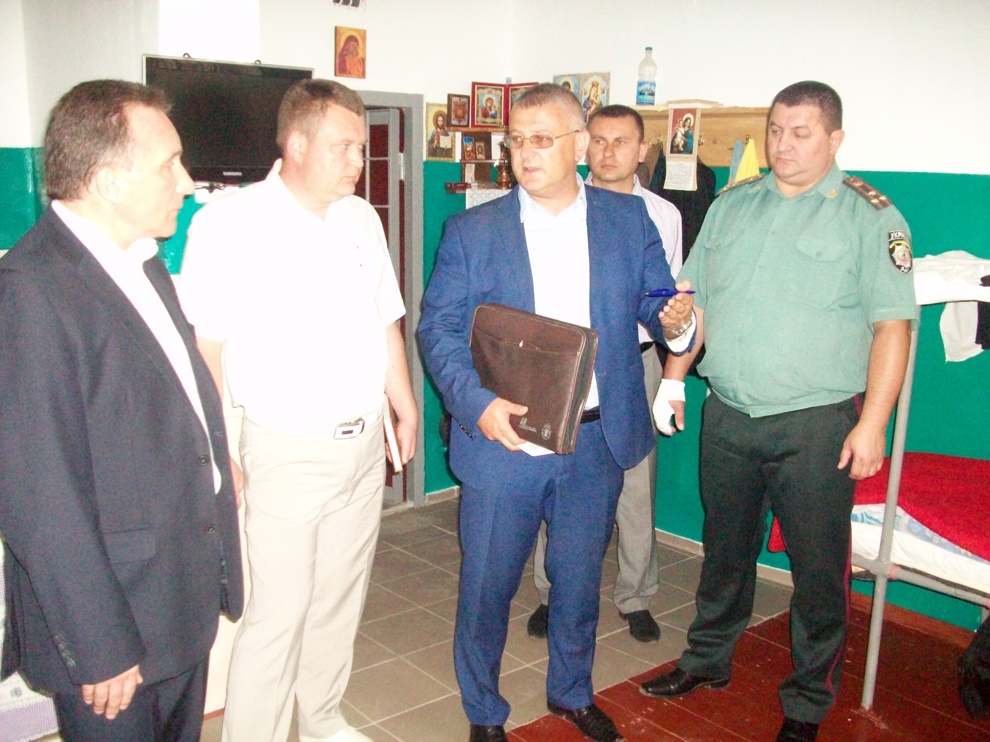 У супроводі начальника управління ДПтС України в Тернопільській області полковника внутрішньої служби Андрія Петровича Шацького, в.о. начальника установи підполковника внутрішньої служби Руслана Богдановича Дріля прокурори здійснили обхід території та камер режимного корпусу де утримуються ув’язнені та засуджені.