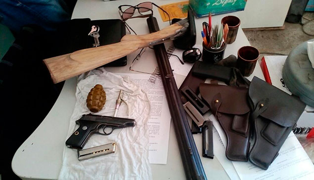 У ході контролю за вчиненням злочину правоохоронці здійснили оперативну закупку вогнепальної зброї, придбавши у одного із спільників пістолет системи «наган», набої до нього та глушник. Під час обшуків у гаражі та помешканнях «ділків», силовики вилучили дві гранати Ф-1, пістолет «Вальтер», два глушники, мисливську рушницю марки «Хеліс», а також набої калібру 9 мм та 7,62 мм.