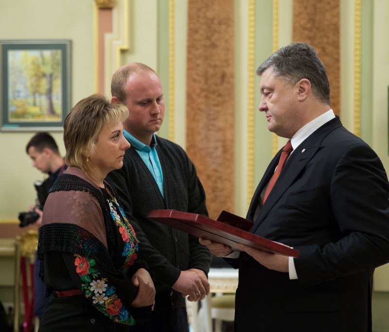 Нагороду сина отримала з рук Президента мати Героя Оксана Гарматій.