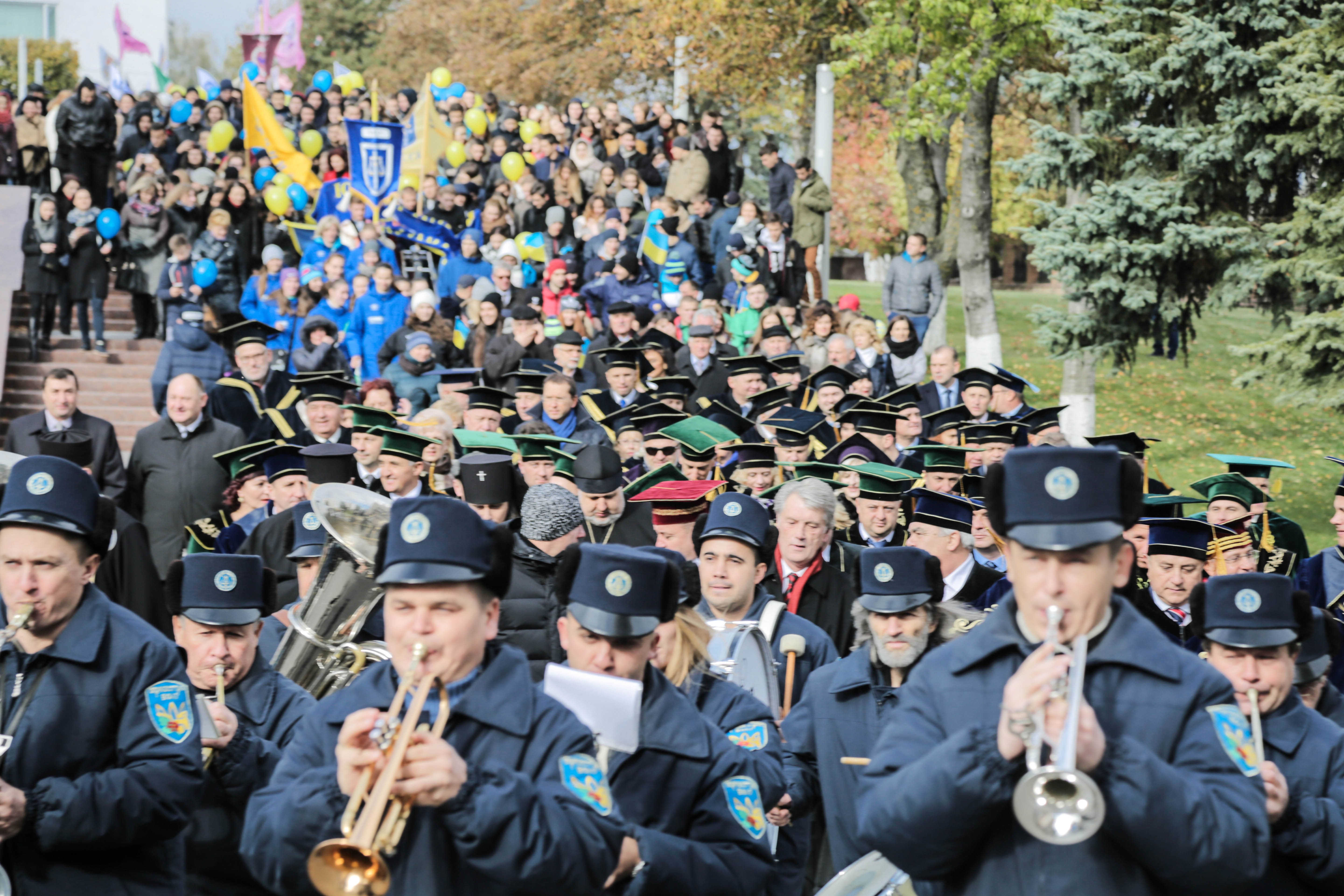 Адміністрація ТНЕУ, декани факультетів, директори інститутів, студентство університету та гості сформували колону, здійснивши пішу ходу вулицями міста до Театрального майдану. Усіх учасників зібрання благословили представники духовенства м. Тернополя.