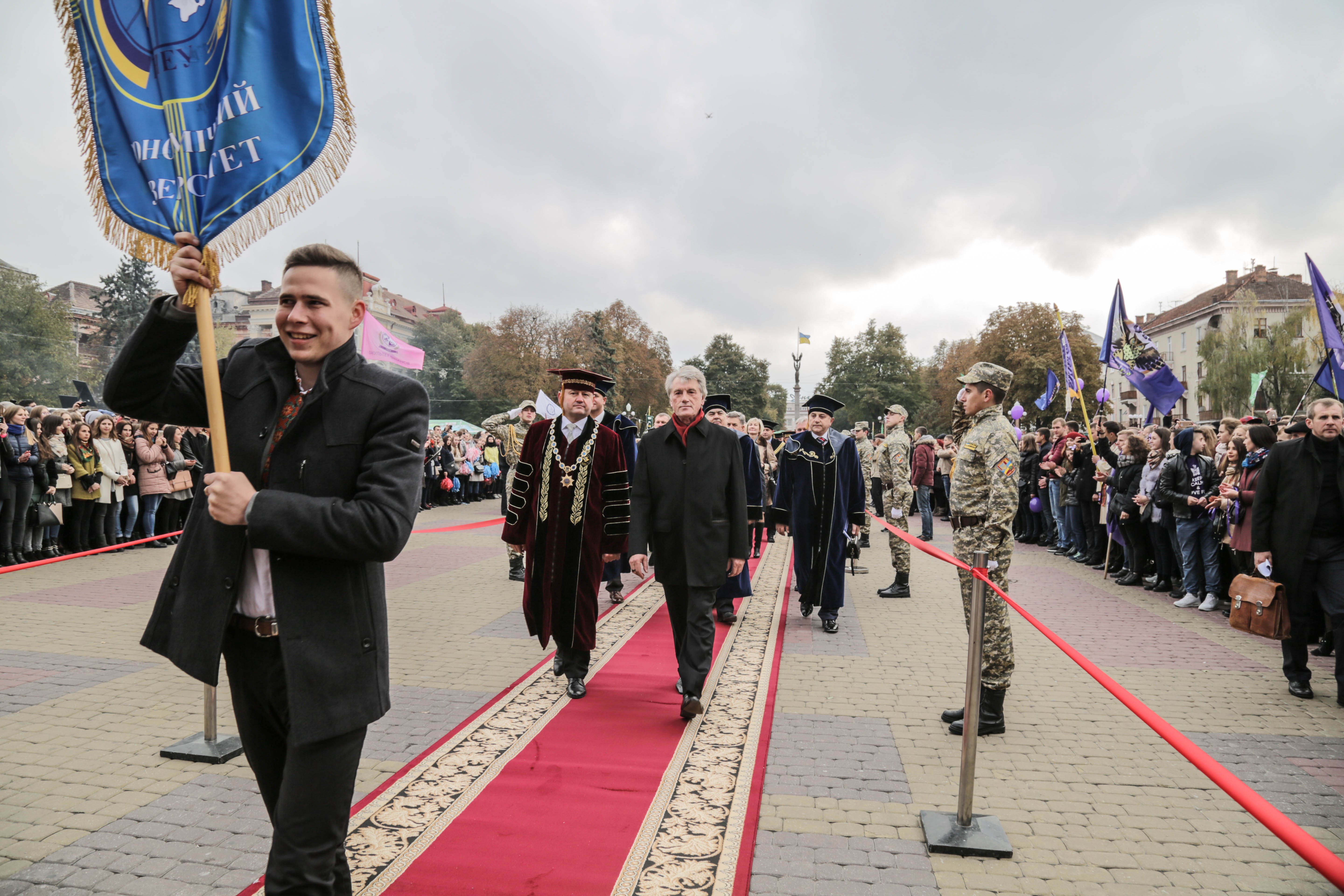 Прибувши на Театральний майдан, університетська родина ТНЕУ разом з гостями пройшли «червоною доріжкою» до Тернопільського академічного обласного українського драматичного театру ім. Т.Г. Шевченка, де на усіх учасників свята чекав урочистий концерт «Віват, Університете!»
