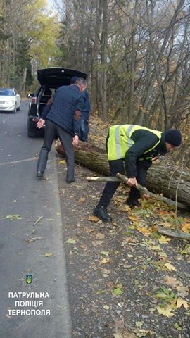 Аби не трапилося транспортного колапсу, інспектори разом з небайдужими тернополянами спільними зусиллями прибрали дерево. У такий спосіб вони розчистили проїзд і водії швидко змогли дістатися до місця призначення
