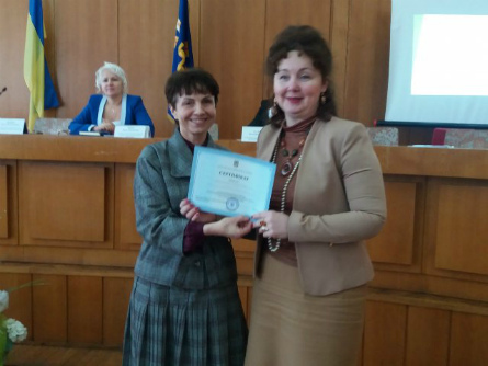 Під час колегії управління освіти і науки облдержадміністрації в.о. начальника управління Ганна Зварич вручила нагороди закладам освіти області, які перемогли у Всеукраїнському проекті «Розвиток соціальної згуртованості суб’єктів освітнього процесу».