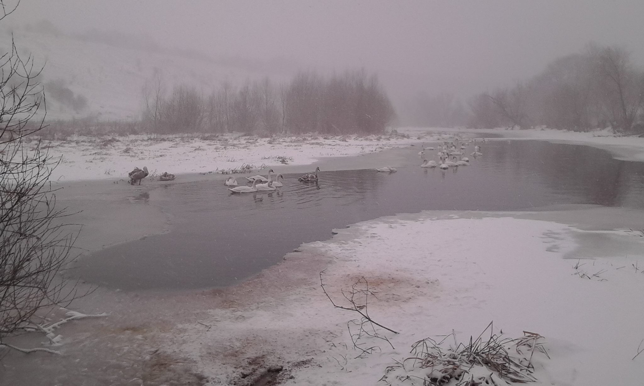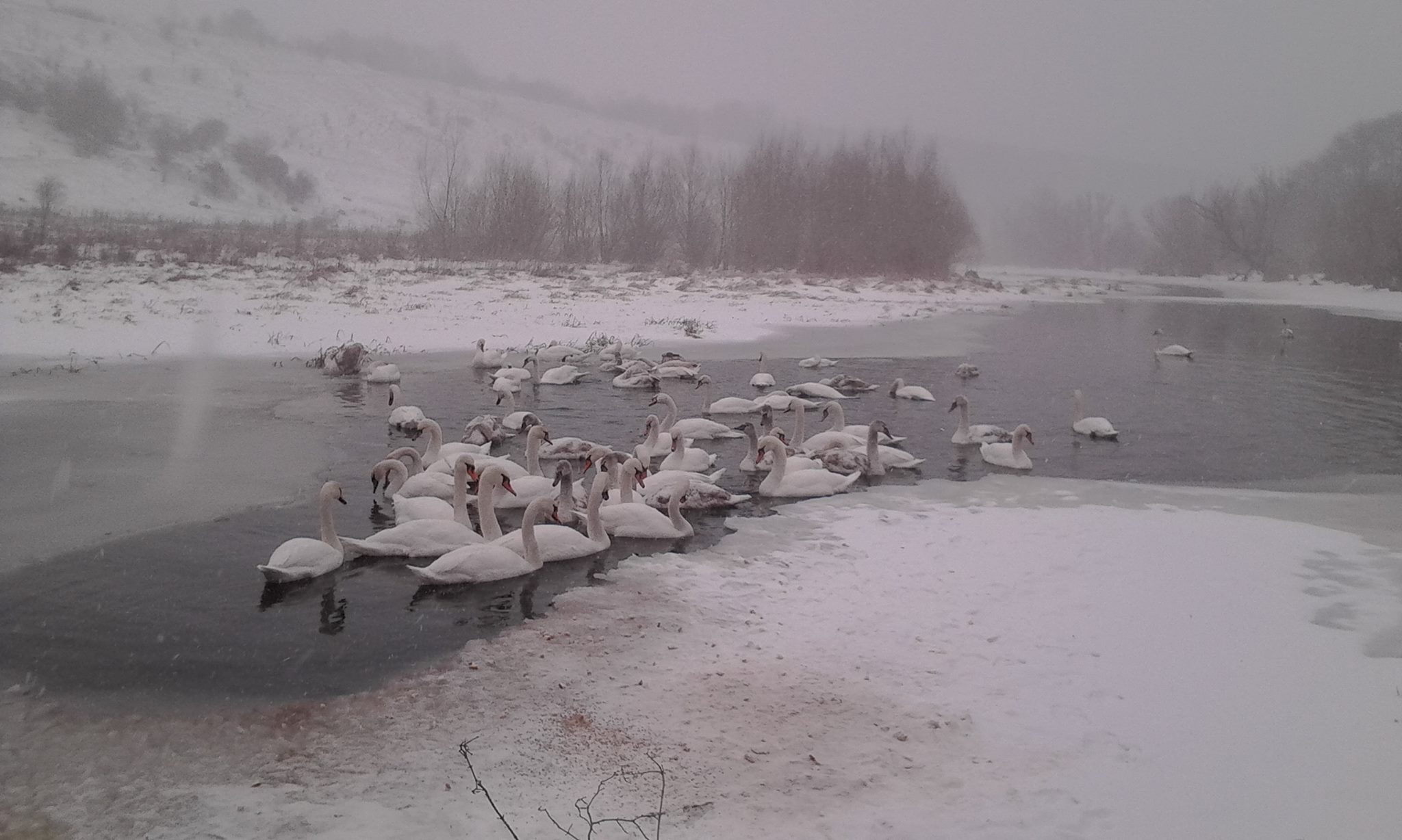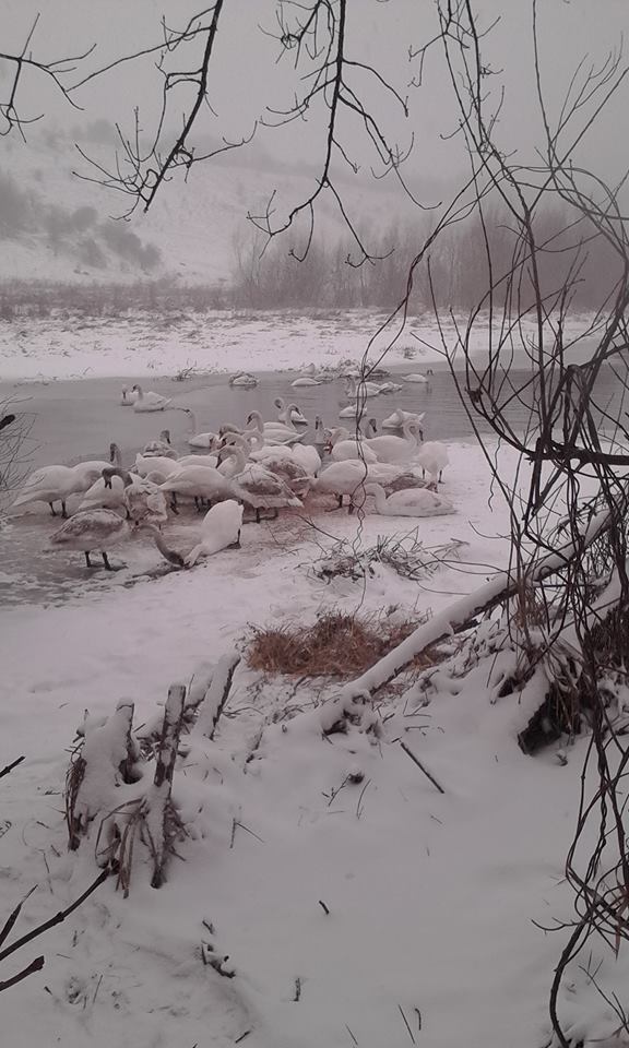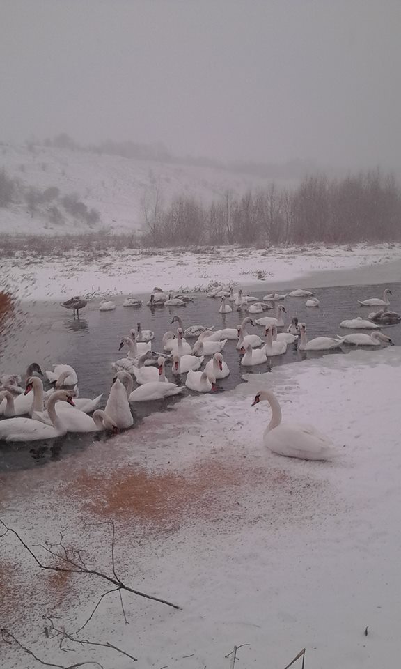 «Красиві птахи, які зачаровують своєю величчю і поважністю… За дивною помилкою природи залишились зимувати на Збручі, в Скалі, в районі млина. Не полінуйтесь, погодуйте їх, хто може. Туди ще поки можна заїхати машиною», – написала у своєму Facebook Ірина Залеська.