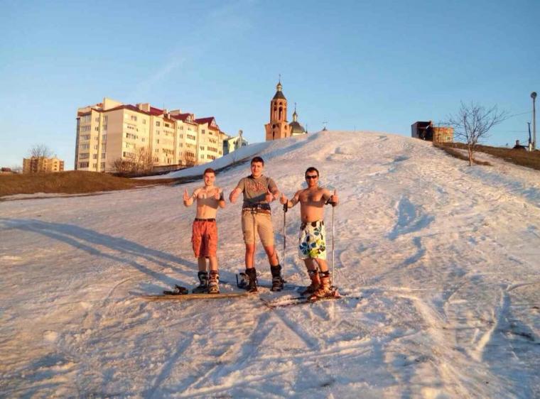 Тернополяни в шортах катаються на лижах. Фото