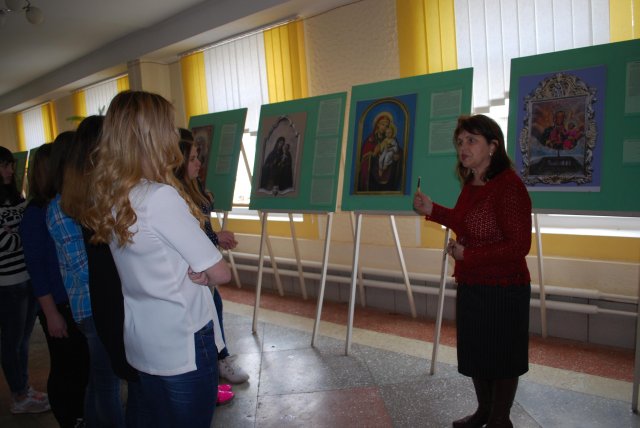 Учні закладу мають прекрасну можливість детально оглянути кожну ікону та прослухали цікаві розповіді, підготовлені викладачем предмету “Основи християнської етики” Ганною Князь про історію появи чудотворних ікон, їх особливе місце в історії церкви. Окремі ікони – мають давню історію, відомі як чудотворні – чи то за їхнім чудесним надбанням або місцезнаходженням, чи за дивами та зціленнями, що з ними пов’язані.