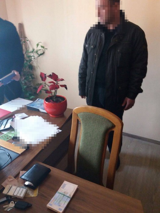 Оперативники СБ України затримали зловмисника у робочому кабінеті під час отримання першої частини хабара у розмірі тридцяти двох тисяч гривень.