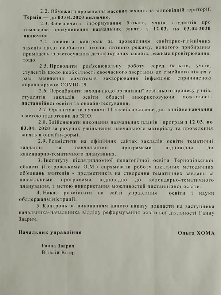 Про це йдеться в наказі Управління освіти і науки Тернопільської обласної державної адміністрації.