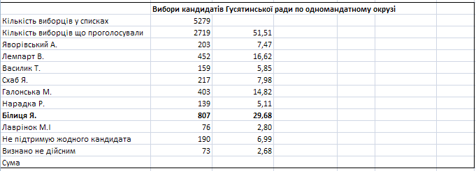 Вибори депутатів в Гусятинську райраду від одномандатного виборчого округу: