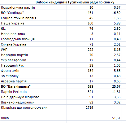 Вибори депутатів в Гусятинську райраду по партійних списках: